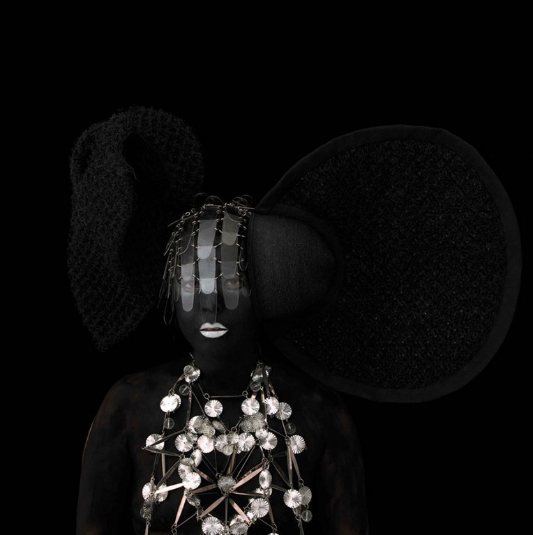 Enfin, dans la troisième et dernière salle, Kimiko nous rappelle qu'elle a été créatrice de mode, s'appropriant ici, des modèles de haute couture de Paco Rabanne. Modèles qu'elle détourne à nouveau au gré de son extravagance pour proposer encore ici des photographies captivantes.